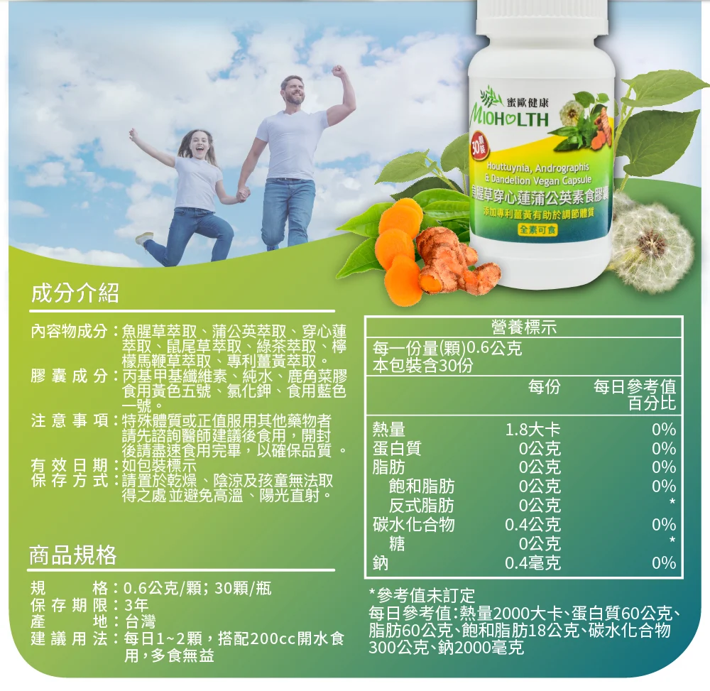 【蜜歐健康】魚腥草穿心蓮蒲公英素食膠囊(30顆/瓶)